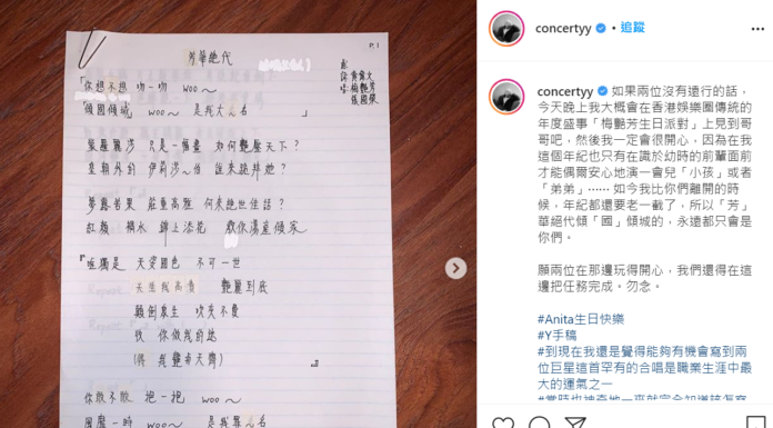 梅艷芳57歲冥壽 黃偉文公開《芳華絕代》手稿